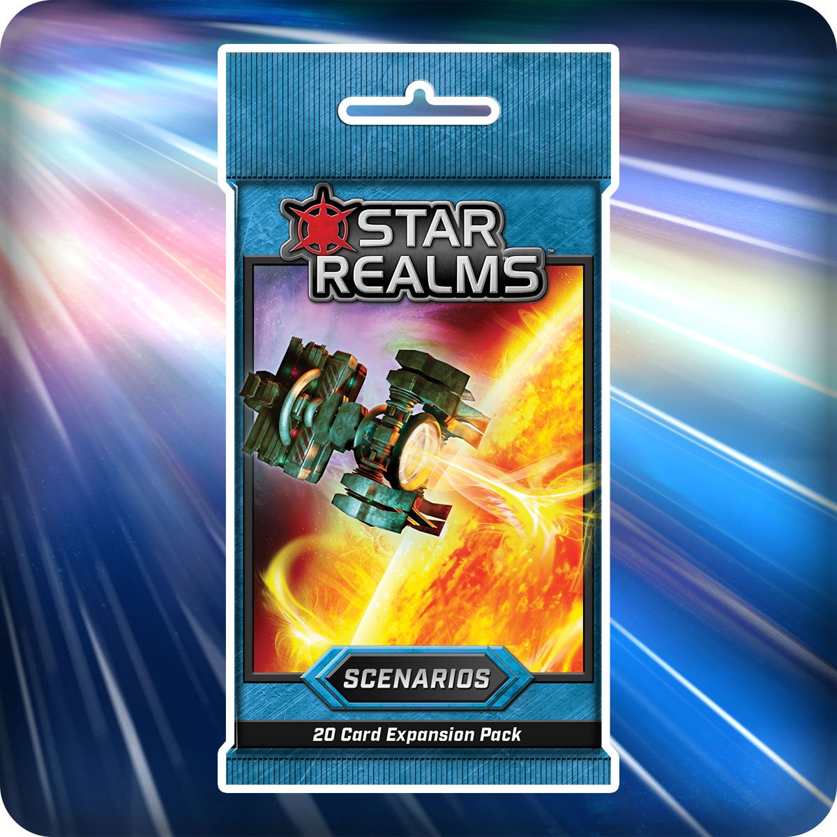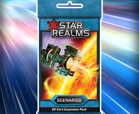 Star Realms: Scenarios is a supplemental Star Realms item that consists of twenty scenario cards. Before the start of a game, shuffle the deck of cards, then reveal one of the scenarios, which changes one or more rules — or introduces new rules — for that particular game.