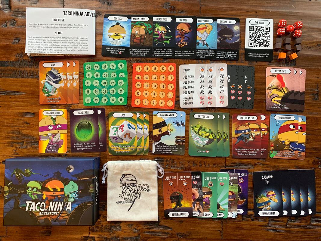Taco Ninja Adventure is a card game for 2-6 players created by Turn Sideways Games.