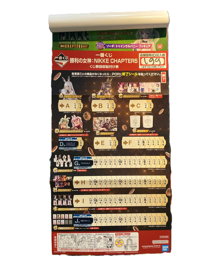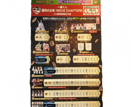 SHARED TO : 77 in stock 199000 Enter Quantity 12345678910 Add to WishlistWeight: 250 gAgesMax: 100 Ages : 12+ Players : - Game Length : CONTENT DESCRIPTION Tiket Ichiban Kuji Goddess of Victory Nikke Chapter 5 Total ticket 80 Last One x1 A x 2 B x 2 C x 2 D x2 E x2 F x6 G x16 H x16 I x16 J x16 Log in or register to post comments Comments