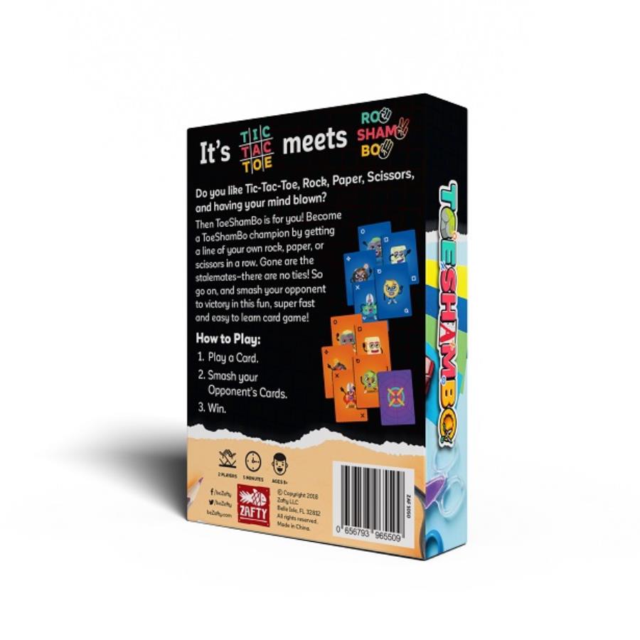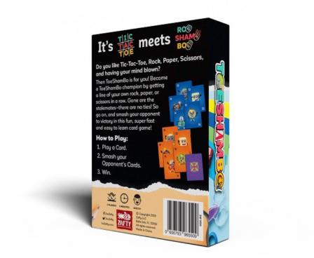 A fast and strategic card game where you're playing Tic-Tac-Toe with cards, but the Xs and Os have been replaced with Rock, Paper, & Scissor! If your opponent is blocking your three in a row of Rocks, Papers or Scissors, you can play over their card if your card beats it, Rock-Paper-Scissor style. (Rock>Scissor>Paper>Rock)
