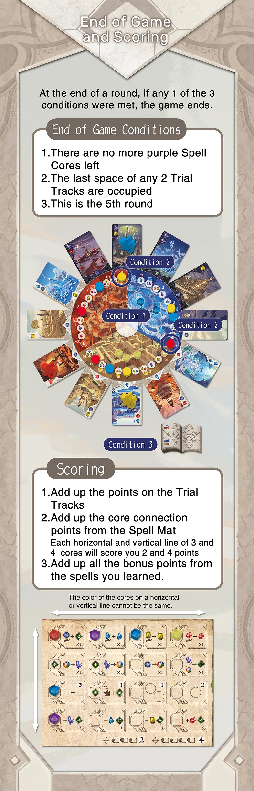 The game is played over 5 days (rounds) at most. At the end of the game, whoever has the highest Trial Points (VP) will be the winner.