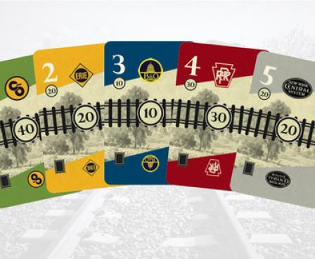 Trick of the Rails, themed on the rise of the American railway period, combines 18XX-like portfolio management and a trick-taking card game. Players collect stock certificates and make the companies more valuable by laying the rail network.
