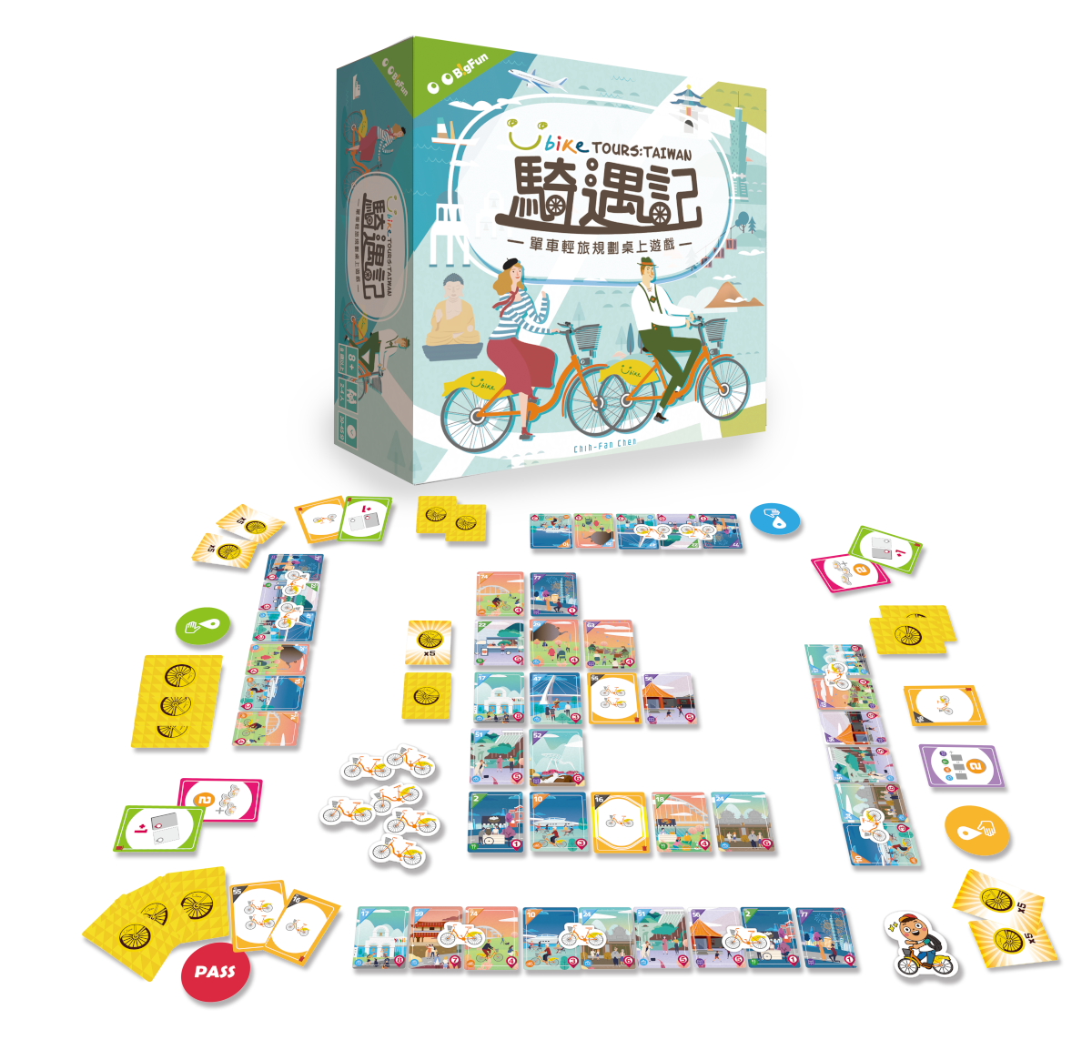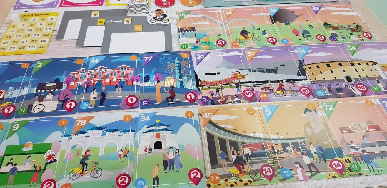 UBike Tour: Taiwan is a light-hearted card game for 2-4 players to plan their travel in North Taiwan with the convenient public bike system: UBike. It's a delightful mixture of "push your luck" and "tableau building" mechanisms in which you also get to visit some beautiful scenery spots in Taiwan.