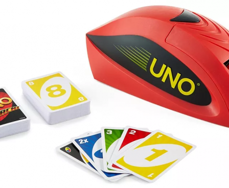 You'll still encounter all the elements that make UNO so unpredictable and challenging, but add to that a motorized card launcher that shows no mercy and you've got UNO Attack. The object of the game is still to get rid of all your cards. The UNO command cards direct the game by telling players when to trade hands, discard, reverse the playing order, or skip a player. Beware the dreaded Hit command, though, as this translates into a game of Russian roulette. You never know when the card launcher is going to fire off a stream of UNO cards just for you! For 2 to 10 players. Requires three C batteries (not included).