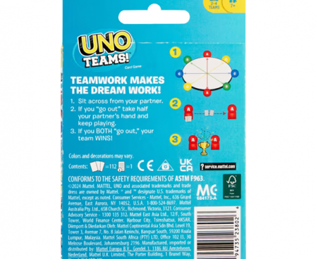 UNO Teams is still the classic game players know and love but played in teams of two!