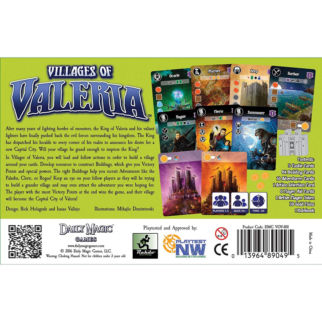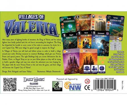A village-building card game set in the world of Valeria. Establish resources, construct buildings, and attract adventurers to your Village to be crowned the next capitol city.