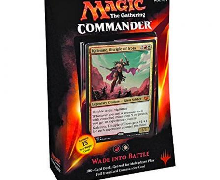 Wade into Battle is a 100 card Commander preconstructed deck, first featured in Commander 2015, and reprinted in Commander Anthology Volume II. It is bicolor red/white. [1] The primary theme of the deck is giants, and the secondary theme is big creatures. The primary new commander is Kalemne, Disciple of Iroas, the secondary new commander is Anya, Merciless Angel, and the reprint commander is Gisela, Blade of Goldnight.
