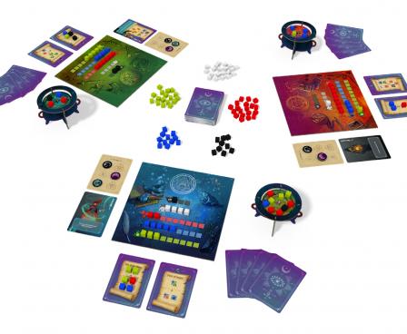 Being a witch is all about wielding powerful magical ingredients — but a witch can wield only so much power before everything blows up in their face. Choose your recipes wisely to clear your workbench and stick others with too much raw material because the first player to overflow their nemesis' cauldron with enough ingredients wins!