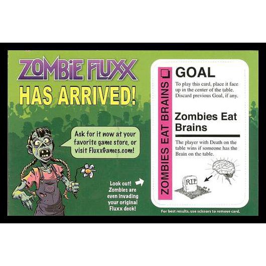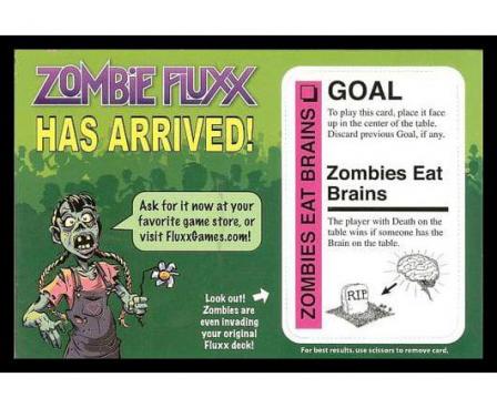 Zombie Fluxx is the zombie uprising card game with ever-changing rules. There is now a new type of card: Ungoal cards (conditions in which everybody loses!)