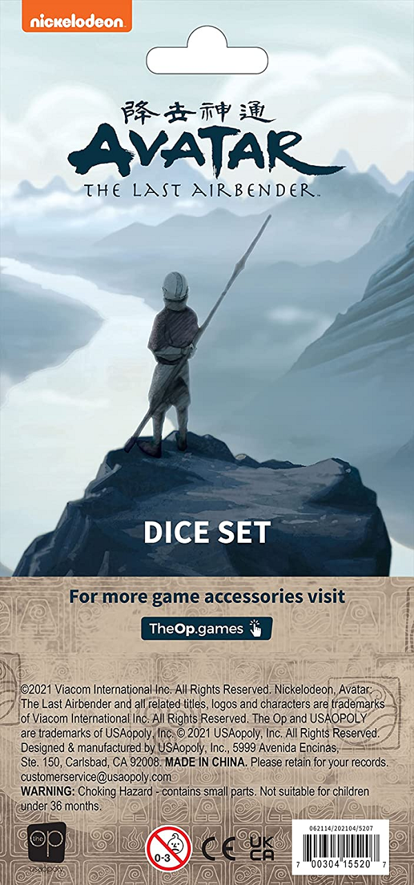 Take a master of elements to your next game night with this four nations-approved set of dice! This 6-sided dice set features your favorite characters from the Nickelodeon animated series including Aang, Zuko, Sokka, Katara, and Toph.