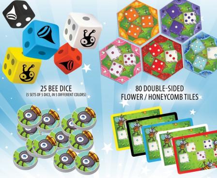 BEEEEES! is a buzzing real-time dice rolling game for 2-5 players where brains matter as much as speed. Players frantically roll dice to claim hive tiles in front of them and their neighbors. The player with the most dice on the tile strategically places it into their burgeoning hive. At the end of the game, the player that has built the best hive wins!