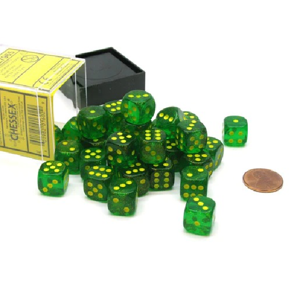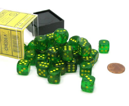 Chessex Borealis 12mm d6 36 Dice Block Maple Green/Yellow CHX (27695)