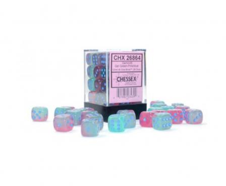 Chessex Gemini Luminary 12mm d6 36 Dice Block Gel GreenPink/Blue 26864
