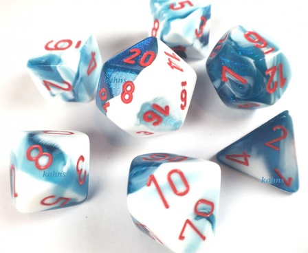 SHARED TO : 0 in stock 165000 Weight: 150 gAgesMax: 100 Ages : Players : - Game Length : CONTENT DESCRIPTION Beautiful Blue and White with Red numbers.Set of 7 polyhedral dice from Chessex: Gemini Astral Blue w/ Red numbers. CHX 26457. Log in or register to post comments Comments