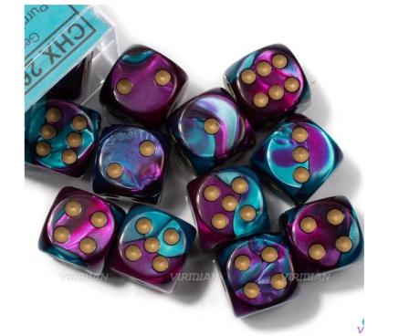 Chessex Gemini Purple Teal Gold 16MM D6 12 Dice ( CHX 26649 )