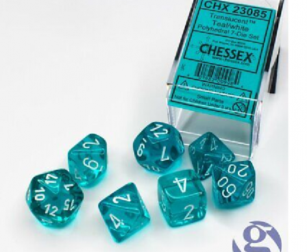 Chessex Translucent Polyhedral Teal/White 7 Dice Set