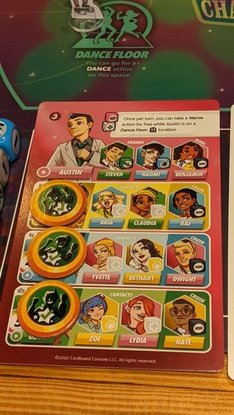 Dance Card! is a family friendly strategy game, set during a high school Homecoming dance! All of the players take on the roles of students and have the objective of dancing with each of their personal dance partners to win the game. The contemporary setting, vibrant art style, and unique theme is designed to appeal to younger players, those new to the tabletop hobby, and parents who want a game to help their kids transition into the world of hobby gaming. Despite being a gateway game, Dance Card! also provides plenty of challenge and replay value for more experienced players as well.