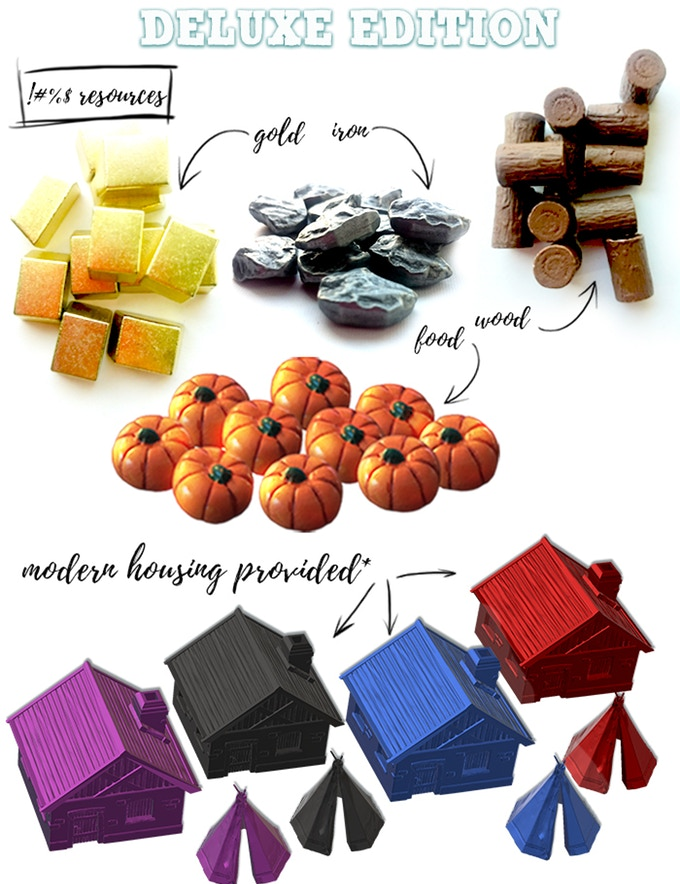 Dice Settlers is a civilization dice game of pool building, resource gathering and area control. Each turn players reach into their bags of dice, roll and choose their own actions: from exploring new lands and building the board, through gathering resources and trading, to developing technologies which offer new abilities, each player chooses their own path to victory.
