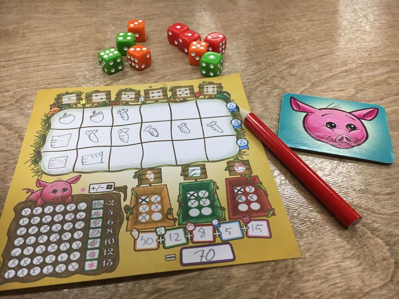 Each round, players take turns rolling and selecting dice in order to plant veggies in their gardens or feed them to their pig. Keep an eye on the ever-changing market though. You want to make sure you have plenty of desirable vegetables come harvest time!