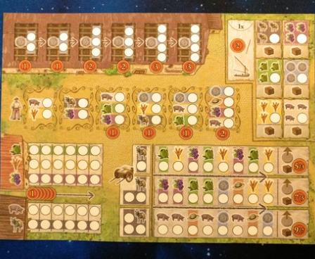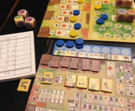 The players need to collect resources to cross them off on their scoring sheet in order to get the most victory points. They can hire helpers to use their special effects. They build a barn to store goods and sometimes they need to have a little time off and have a Siesta!
