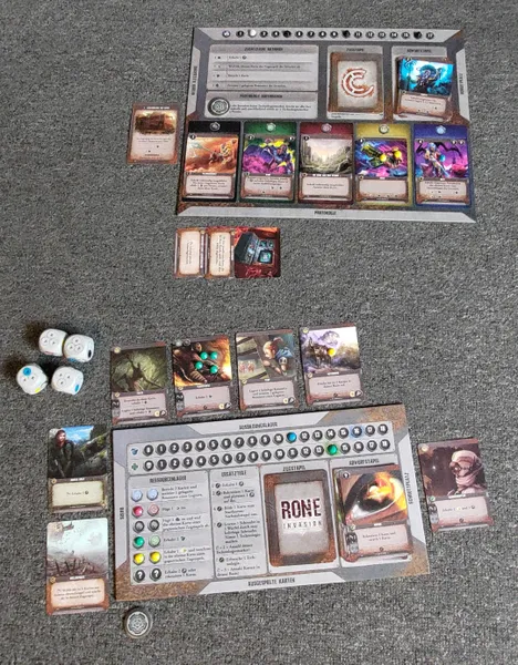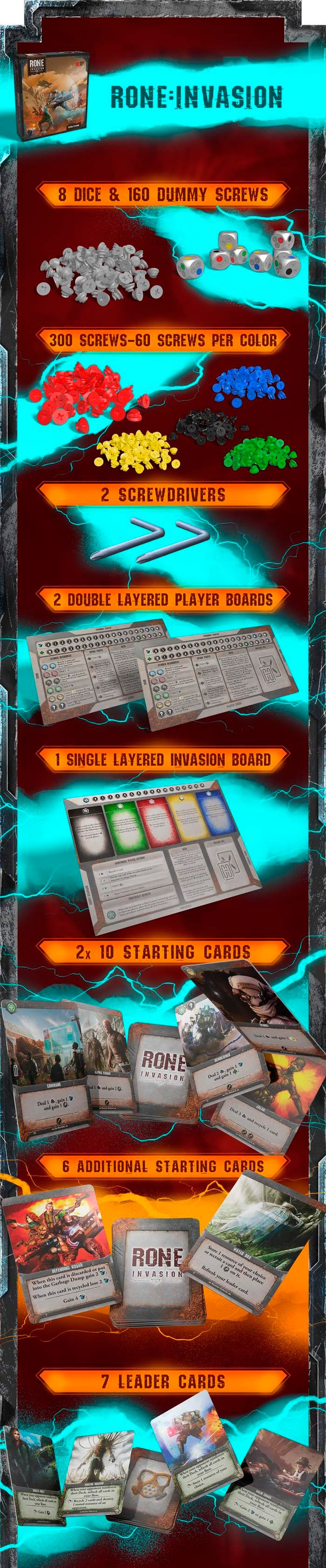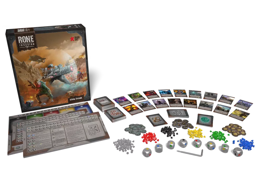 RONE: Invasion is a strategic post-apocalyptic deck and dice building game for 1 or 2 players (expandable to 1 to 4) and features unique dice that can be customized during the game.