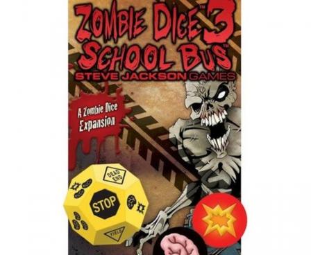 Zombie Dice 3: School Bus, an expansion for Zombie Dice, adds a 12-sided die to the game that's rich with tasty teenage brains, jam-packed with nutritiousness from all their time at school — but those kids are packing shotguns, too, so you might find yourself chowing down on a brain bullet, chasing runners off the bus, getting run over the bus(!), or finding yourself on the receiving end of multiple shotguns.