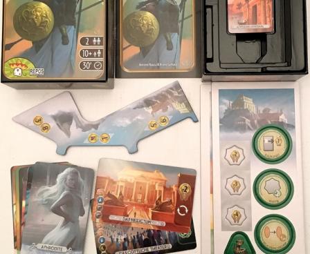 During Age I you collect mythology tokens which allow you to choose which deities have a place in the Pantheon and during Age II you collect offering tokens, which help you court those deities. Then, during Ages II and III, you can activate a god or goddess in the Pantheon instead of taking a card from the pyramid. To do so, you pay whatever that god or goddess demands from you in offerings, then place it next to your city.