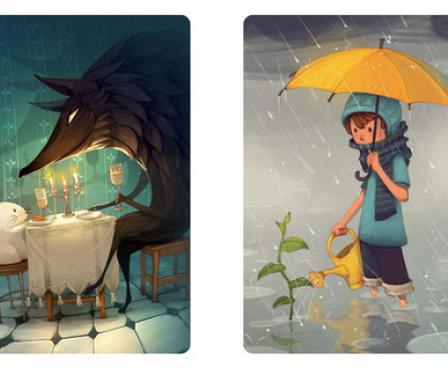 Dixit Memories contains 84 new cards, each with a unique image drawn by Pier and colored by Marie Cardouat, artist of Dixit and Dixit 2. The stand alone version also includes a folding game board, 6 new rabbit scoring tokens (12 total), and a box large enough to hold all the Dixit cards released to date.