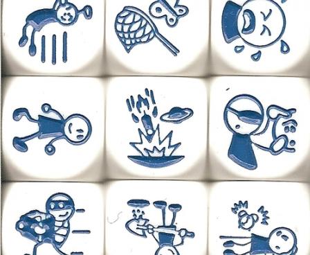 Each jumbo 1" cube has 6 images or icons, with a total of 54 all-different hand-inlaid images that can be mixed in over 10 million ways. You roll all 9 cubes to generate 9 random images and then use these to invent a story that starts with "Once upon a time..." and uses all 9 elements as part of your narrative.