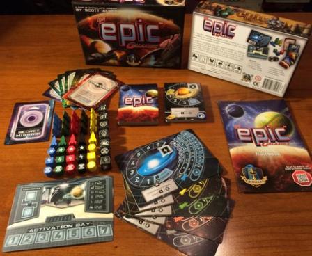 A thirty-minute game of galactic conquest, Tiny Epic Galaxies is driven by an exciting dice-rolling mechanism that rewards thoughtful programming of the results. Players control a home galaxy and a fleet of space ships. As players upgrade their galaxies, they gain access to more ships and more dice.