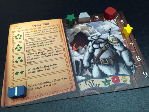 Additionally new mechanisms are introduced to the building action of the game. This will have players tracking their tower progress by placing tower cubes onto regions they possess. Players are encouraged to keep these tower cubes safe because losing them in war results in a loss of progress on the tower card.