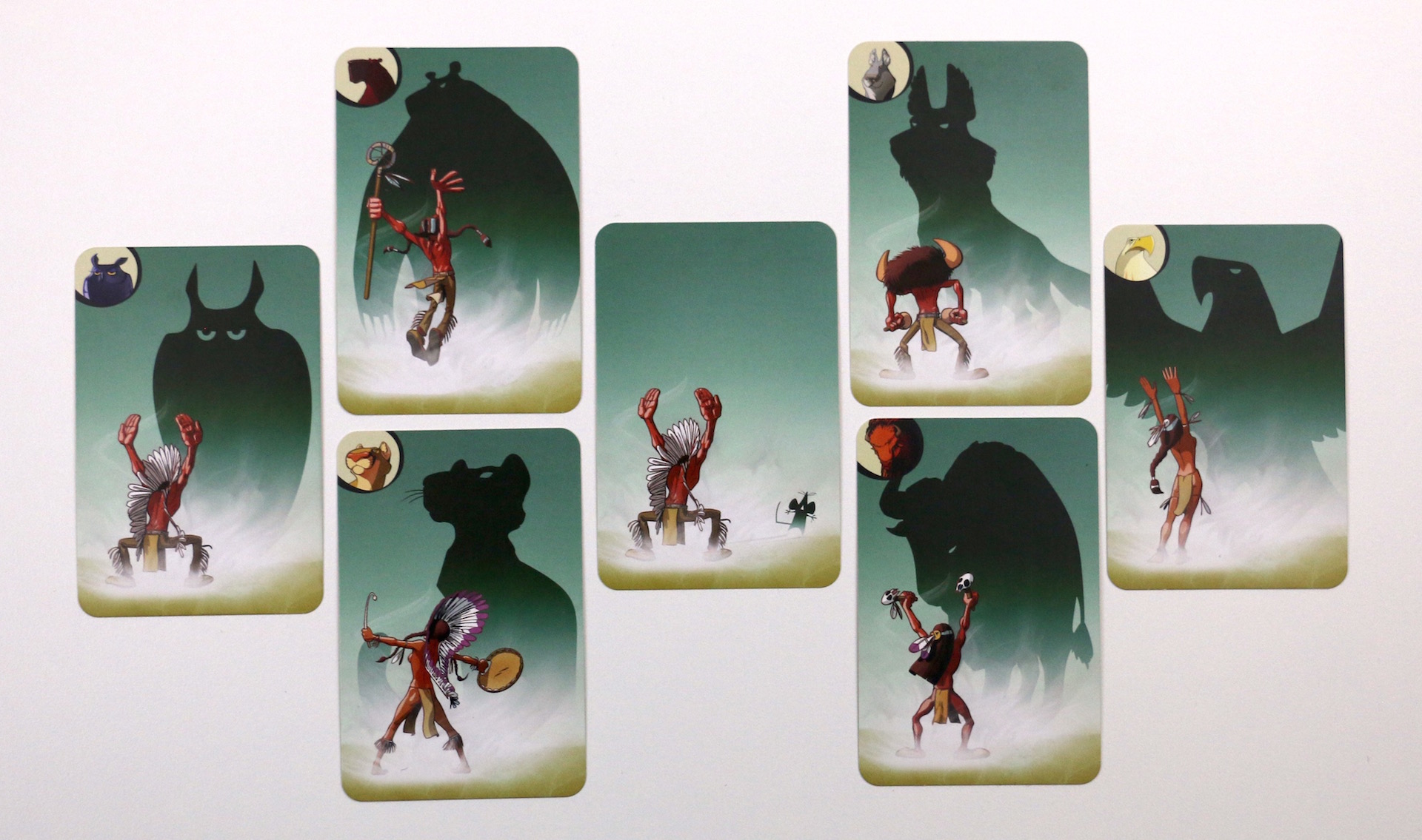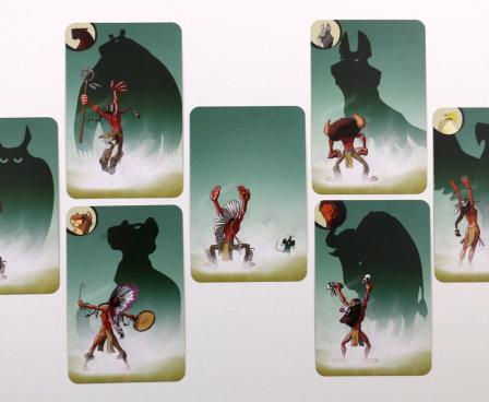 Each player in turn plays an incantation card face down in front of an animal totem. Other players can call the bluff if they think it's not the right animal. A player can also try a full ceremony if he thinks enough incantations have been made to a given animal spirit. A player wins by getting rid of all their incantation cards or fulfilling two ceremonies.