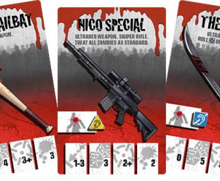With these new zombies and environmental hazards, you're going to need something to keep you safe! Luckily for you, Angry Neighbors adds all new weapons to your core game as well as a collection of Ultrared equipment! These equipment cards offer the most powerful and potent zombie-obliterating weapons in the Zombicide universe to date! Perfect to up your survivors' survivability!