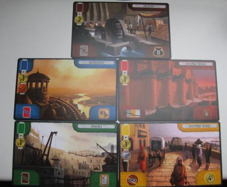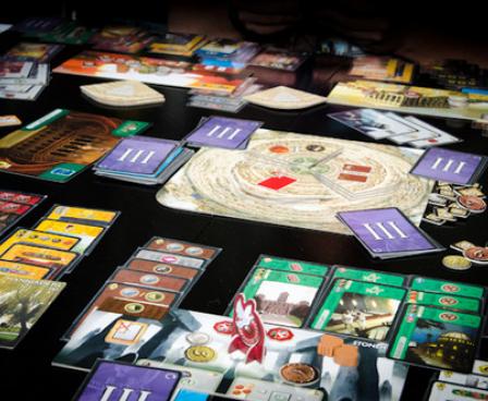 In the second half of 7 Wonders: Babel, one of five age specific great project cards is randomly revealed at the start of each age, and a number of tokens are placed on it, based on the number of players. This card imposes a tax on players who want to play cards of a certain color. When a player pays this tax, he takes one of the tokens from this law card. At the end of the age, if all of the tokens have been removed, then players receive a bonus (which is depicted on the card) for each token they have; if tokens remain on the card, then each player without a token is penalized.