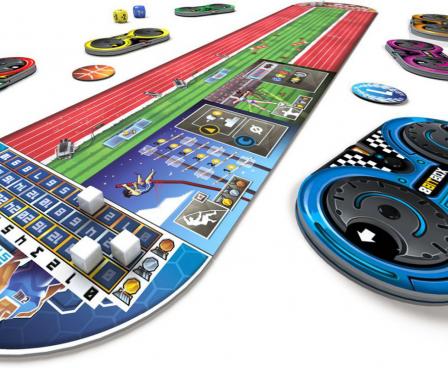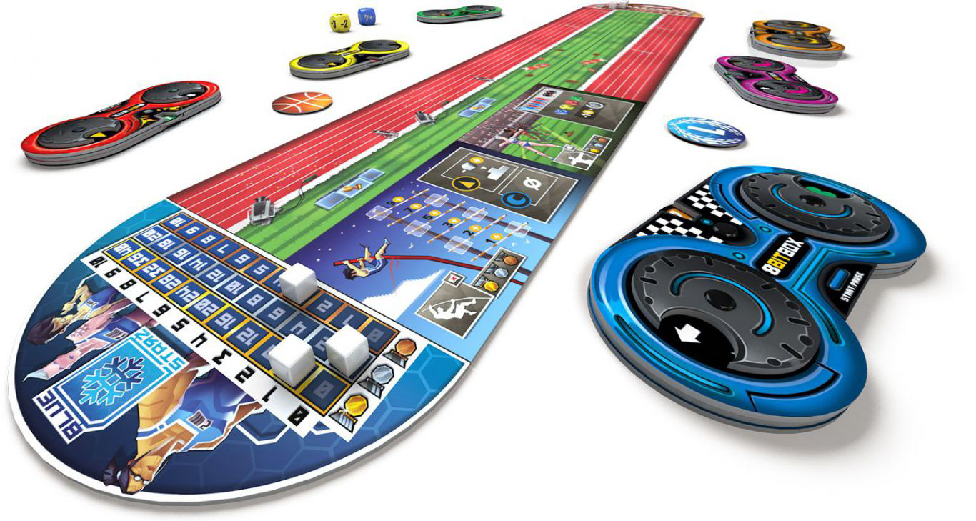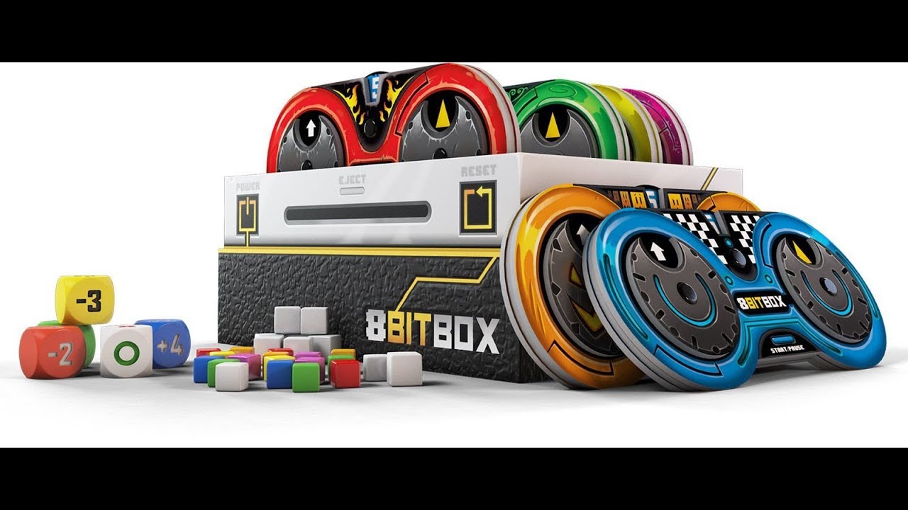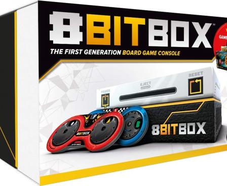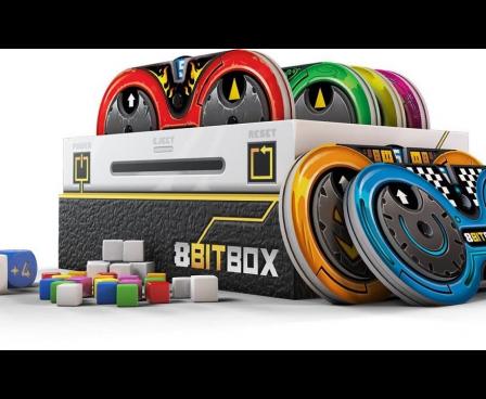 8Bit Box is a board game that will remind you the golden age of video games as each player has a gamepad to program their actions, using three wheels: direction, symbol, and value.
