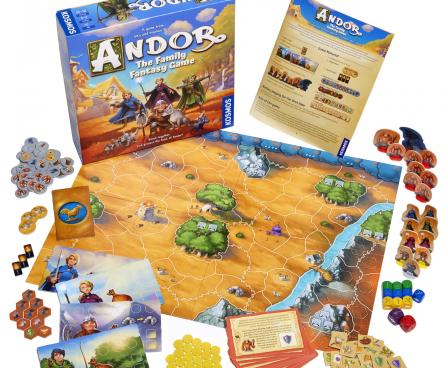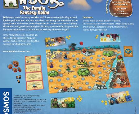 In Andor: The Family Fantasy Game, a.k.a. Andor Junior, each player chooses one of four heroes — magician, warrior, archer, or dwarf — before beginning their quest to rescue the wolf cubs lost in the dwarven mine. However, before beginning the search for the wolf cubs, the heroes must first complete the tasks given to them by Mart, the old bridge guard. Only after you have solved all of the bridge guard's tasks will he let you cross the bridge to the dwarven mines where you believe the wolf cubs are hiding. But watch out! While you are on your way, the sly dragon is getting closer to the castle Rietburg. Should it arrive at the castle before the heroes have completed their tasks and saved the wolf cubs, then all is lost, and you lose the game. If you find all the wolf cubs before the dragon reaches Reitburg, you win!