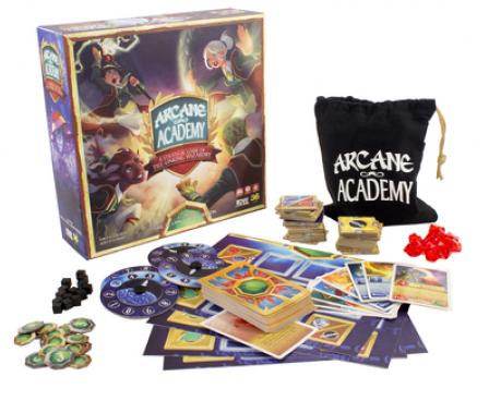 Challenge rival students to become the best in class in Arcane Academy, a board game of tile-linking wizardry that pits young spellcasters against one another in a duel for honor and prestige. Forge potent magic items and wield wickedly powerful elemental energies to out-think and out-maneuver your opponents.