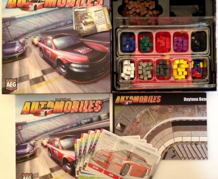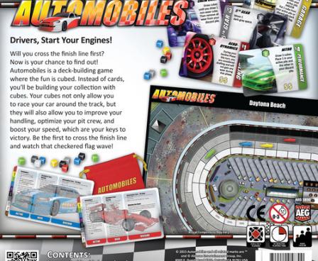 Automobiles is a deckbuilding game in which the fun is cubed because instead of using cards to build a deck, you build with your collection of cubes. These cubes not only allow you to race your car around the track, but they also allow you to improve your handling, optimize your pit crew, and boost your speed, all of which are your keys to victory!