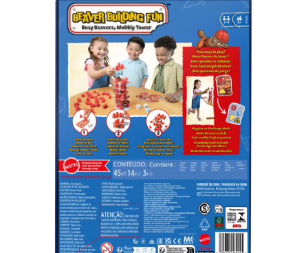 As the wobbly tower grows higher and higher, tension builds as players wait to find out which one will make it fall! Roll the dice to see what symbols come up, then put a beaver on each matching symbol on the Building Tiles. Once a tile is full, it must be placed on a tower. But BE CAREFUL, if the tower falls over that ends the game and you will lose! The player with the steadiest hand and luck WINS! Great gift for kids 6+ who love animals, building games and fun! Colors and decorations may vary.