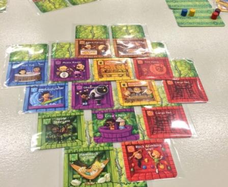 Building takes place over three weeks/rounds, and in each round, players use card drafting and spatial reasoning to add five new rooms to their treehouse. Players must pay attention to the other treehouses being built since they take turns determining which types of rooms score for everyone at the end of each round.