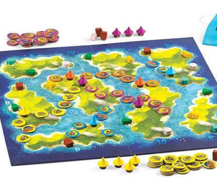 Blue Lagoon is an area control and set collection game in which players manage a group of settlers spreading out over the islands of a newly discovered archipelago.