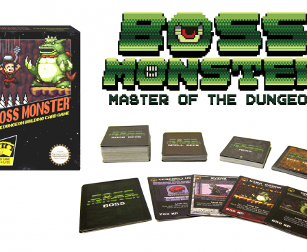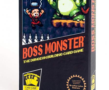 Inspired by a love of classic video games, Boss Monster: The Dungeon Building Card Game pits 2-4 players in a competition to build the ultimate side-scrolling dungeon. Players compete to lure and destroy hapless adventurers, racing to outbid one another to see who can build the most enticing, treasure-filled dungeon. The goal of Boss Monster is to be the first Boss to amass ten Souls, which are gained when a Hero is lured and defeated but a player can lose if his Boss takes five Wounds from Heroes who survive his dungeon.