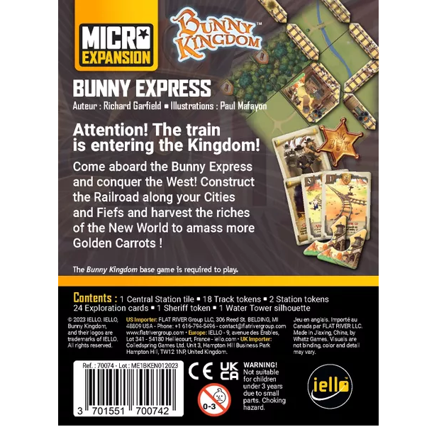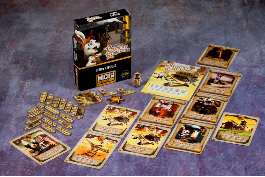 Bunny Kingdom: Bunny Express is a micro-expansion for Bunny Kingdom that allows players to build railroad tracks on the game board. Whoever has the most tracks becomes sheriff, which affects turn order.