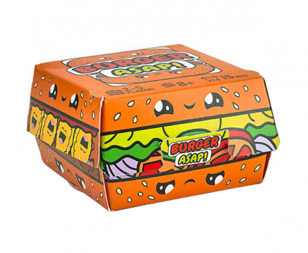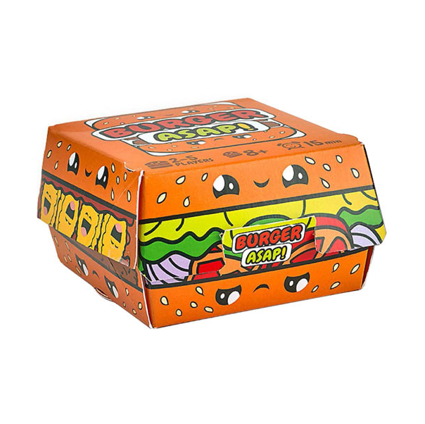 Flip and overlap your cards to build the requested burgers as quickly as possible! Think fast! There is only one solution per order and you need to use all your cards each time!