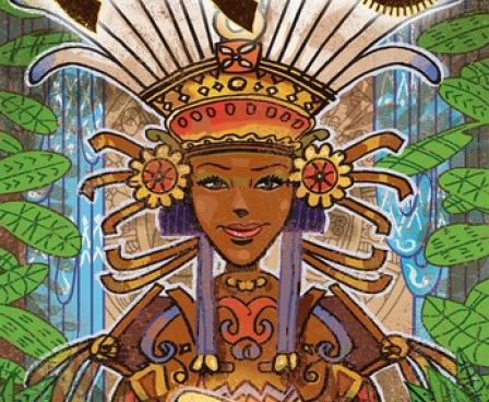 On a player's turn, she places one of her worker tiles on the board adjacent to one or more jungle tiles already in play, then (if two worker tiles are next to an empty space) adds one of the jungle tiles to the playing area in this space. Her workers then get busy and deliver the results of their effort: If you placed workers next to a cacao field, you receive one or two cacao markers per worker; if they're next to a market, you can choose to sell one cacao marker per worker at the listed price; if next to a well, you receive water; if next to a temple, they stand and look good until the end of the game; and so on. She then refills her hand from her personal deck to three worker tiles.