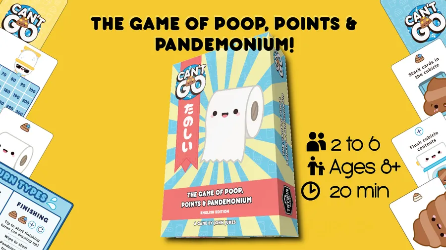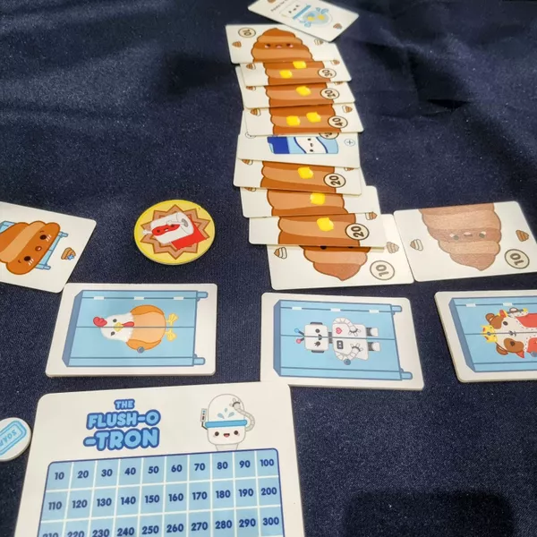 Players play poop cards into the play area, alongside toilet cubicles, to accumulate potentially claimable points. Once a poop is 'finished' players race to try to claim the points of that poop in play.