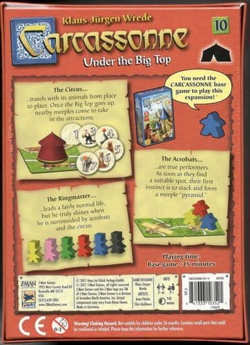 Carcassonne: Under the Big Top is the tenth large expansion for Carcassonne and the first large expansion released exclusively for the second edition of Carcassonne. Part of the Carcassonne series.