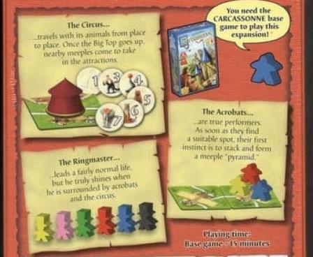 At long last, the circus is coming to Carcassonne. The ringmaster has organized a night full of stunning acrobatic routines that will leave you speechless, while the most talented artists show their latest tricks. Followers can now be trained to perform human pyramids, and a circus tent will attract the people of Carcassonne, while the ringmaster keeps things organized and visitors calm and quiet.