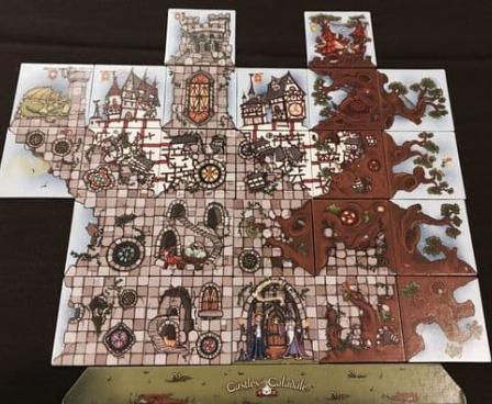 In Castles of Caladale, players lay tiles to construct beautiful castles and rebuild the kingdom. Building the most complete and largest castle earns a player glory throughout the land!