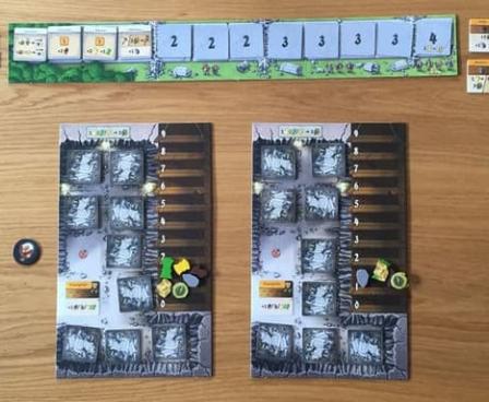 In the two-player game Caverna: Cave vs. Cave, each player starts the game with only two dwarves and a small excavation in the side of a mountain. Over the course of eight rounds, they'll double their workforce, open up new living space in the mountain, construct new buildings and rooms in which to live, and dig for precious metals.